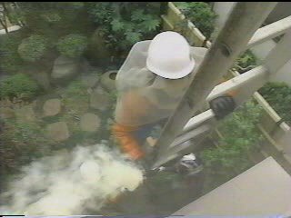 スズメバチの巣の撤去が始まる。