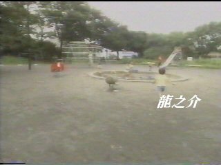 龍之介(龍くん)は、砂場のほうにかけていく。